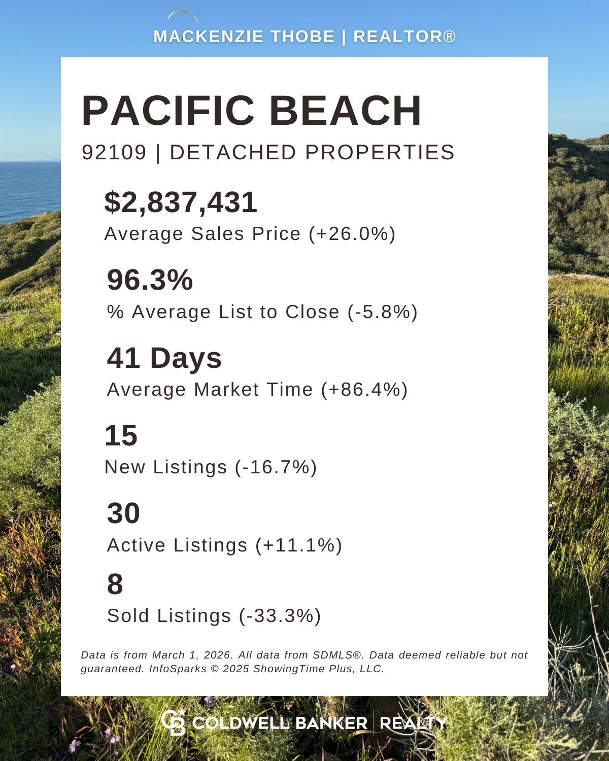 Pacific Beach remains one of the most desirable coastal communities. Buyers continue to seek properties near the water, especially those that combine lifestyle appeal with long-term investment potential.